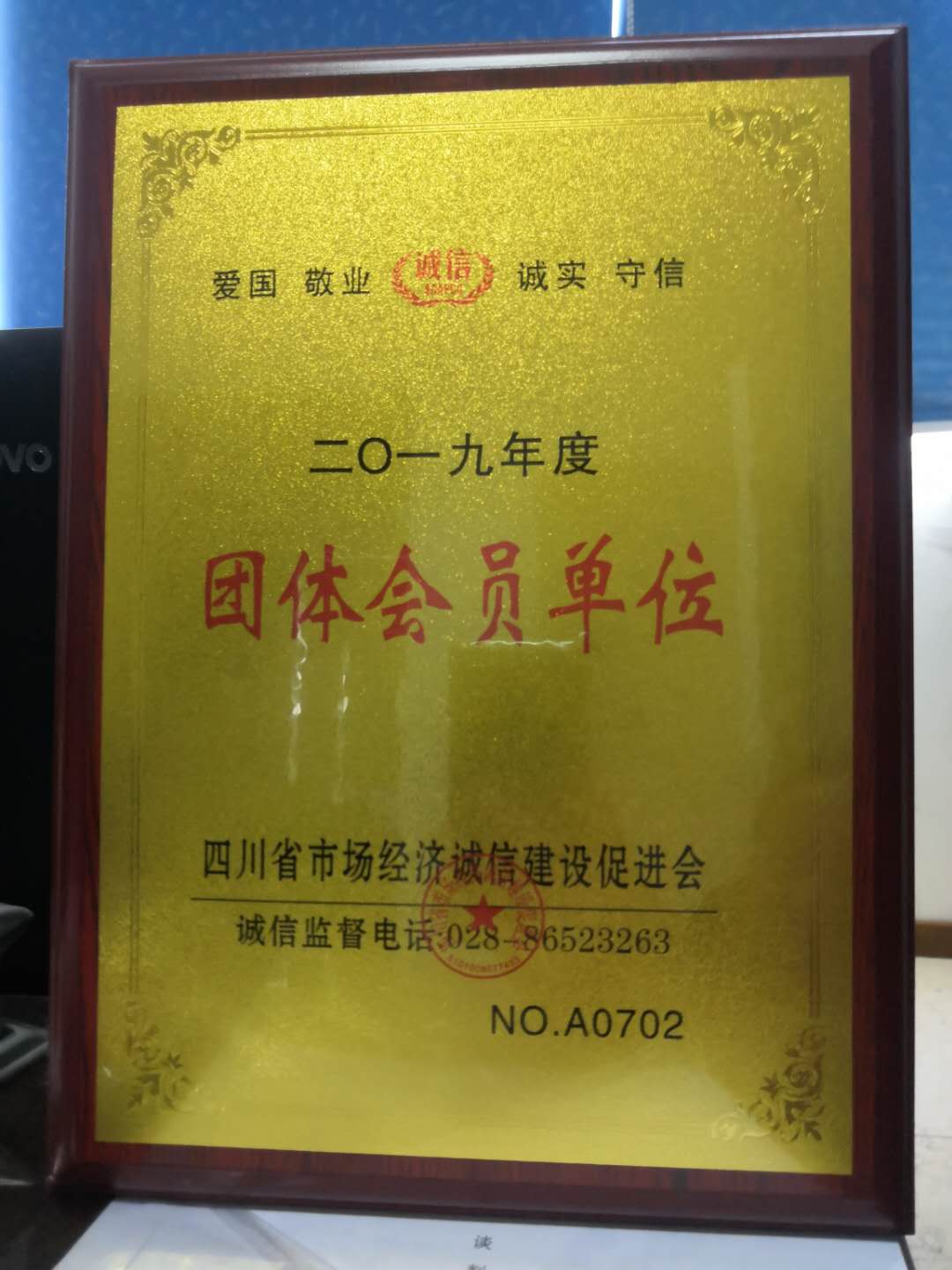 我公司獲得2019年度四川省四川經(jīng)濟誠信建設促進會團隊會員單位認